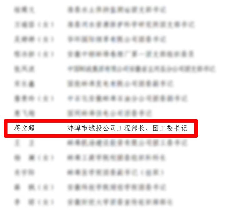 近日,共青團蚌埠市委發(fā)布《關于表彰2022年度“全市五四紅旗團委(團支部) ”“全市優(yōu)秀共青團員”“全市優(yōu)秀共青團干部”的決定》,授予市城投公司團支部2022年度“全市五四紅旗團支部”稱號,城投公司原團工委書記、工程部部長蔣文超同志2022年度“全市優(yōu)秀共青團干部”稱號,城投智慧停車公司員工張錦秋同志2022年度“全市優(yōu)秀共青團員”稱號。
