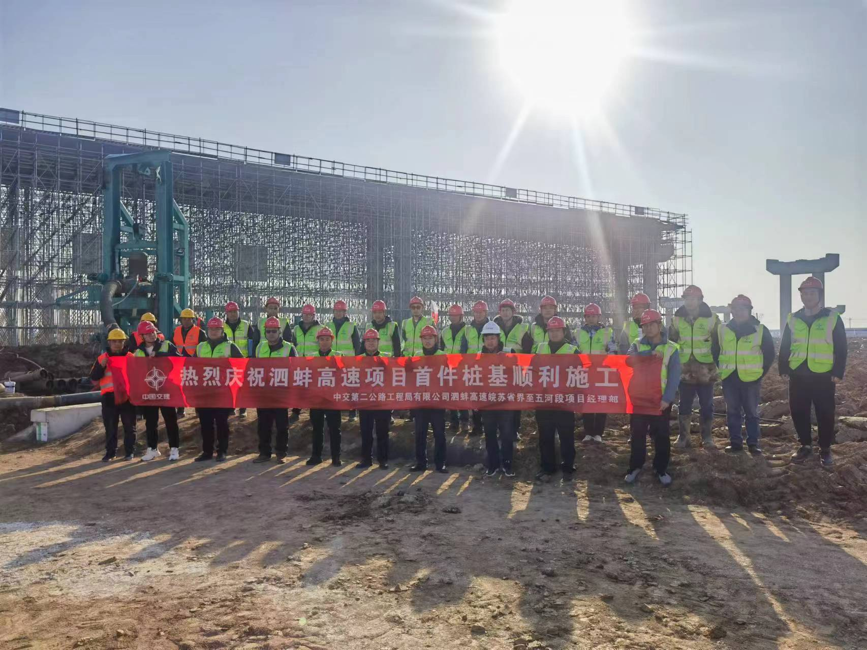 吹響開年沖鋒號!蚌埠城投泗蚌高速項目五河北互通首根樁基順利開鉆